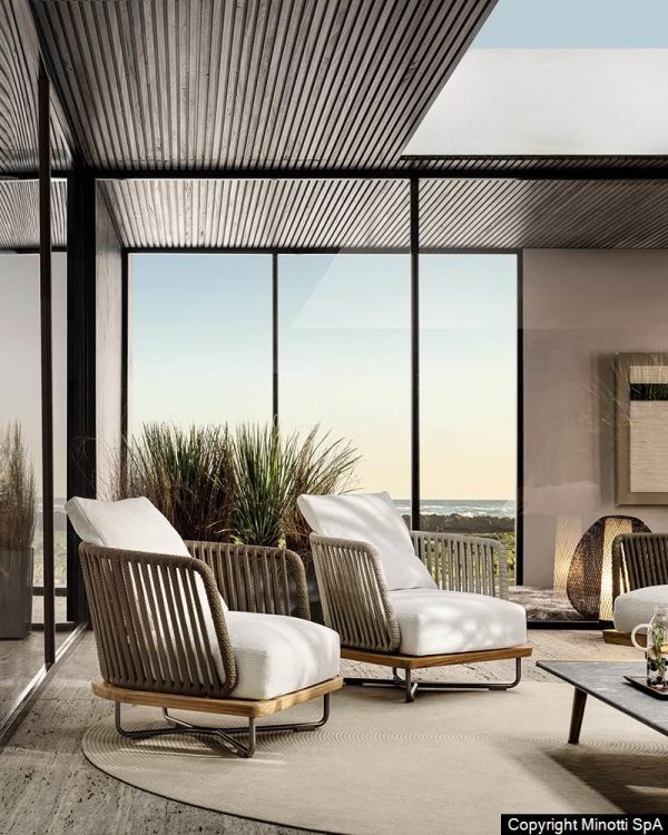 La tela del sillón Córcega es de importación, lo que asegura su calidad y resistencia a los rayos UV y al desgaste, incluso en ambientes al aire libre.